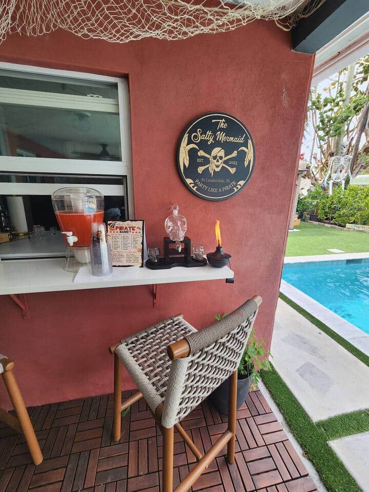 Palm & Plunder is a refined coastal retreat with a dash of pirate mischief. Outside, a pirate-themed backyard with a private heated saltwater pool sets the scene for treasure hunts and cannonball contests. Inside, every room is a chapter in your seaside adventure. Conveniently near Fort Lauderdale Airport 3mi, Beach 5mi, Las Olas dining 3mi, and water taxi stops. Perfect for families, couples, or friends seeking style, comfort, and a touch of adventure.